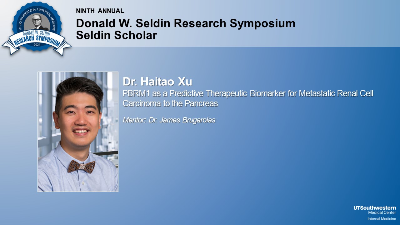 Huge congratulations to Haitao Xu, M.D., for being named the 2024 Seldin Scholar at the ninth annual Donald W. Seldin Research Symposium!